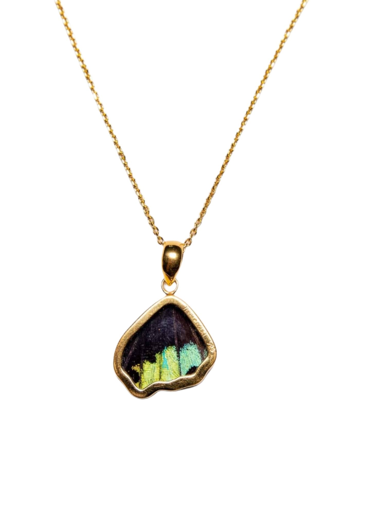 Handmade Immortal Green Sunset Butterfly Pendant in Gold or Silver