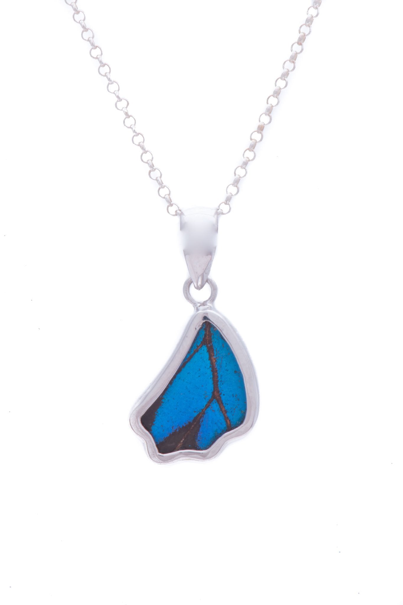 1-Real Butterfly Wings-A-SB-1B-Silver-butterfly-pendant-Royal-Blue-Wing-Shaped-Papilio-Ulysses